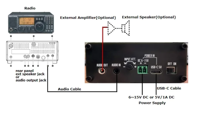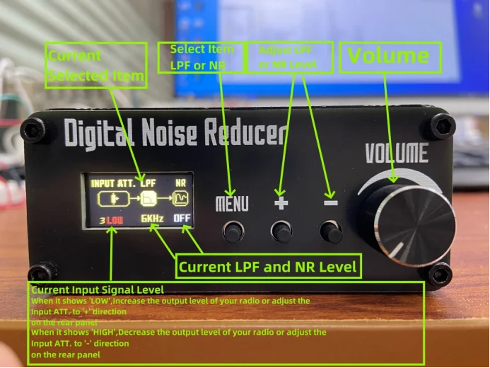 Dit apparaat kan audiosignalen verwerkenmetDigitale ruisonderdrukkinger(NR) en DigitaalLaagdoorlaatFilterenLPF’s).Geschikt voor apparatuur zoals kortegolfradio’s zonder DSP, om de ervaring tijdens het gebruik te verbeterenQSO.